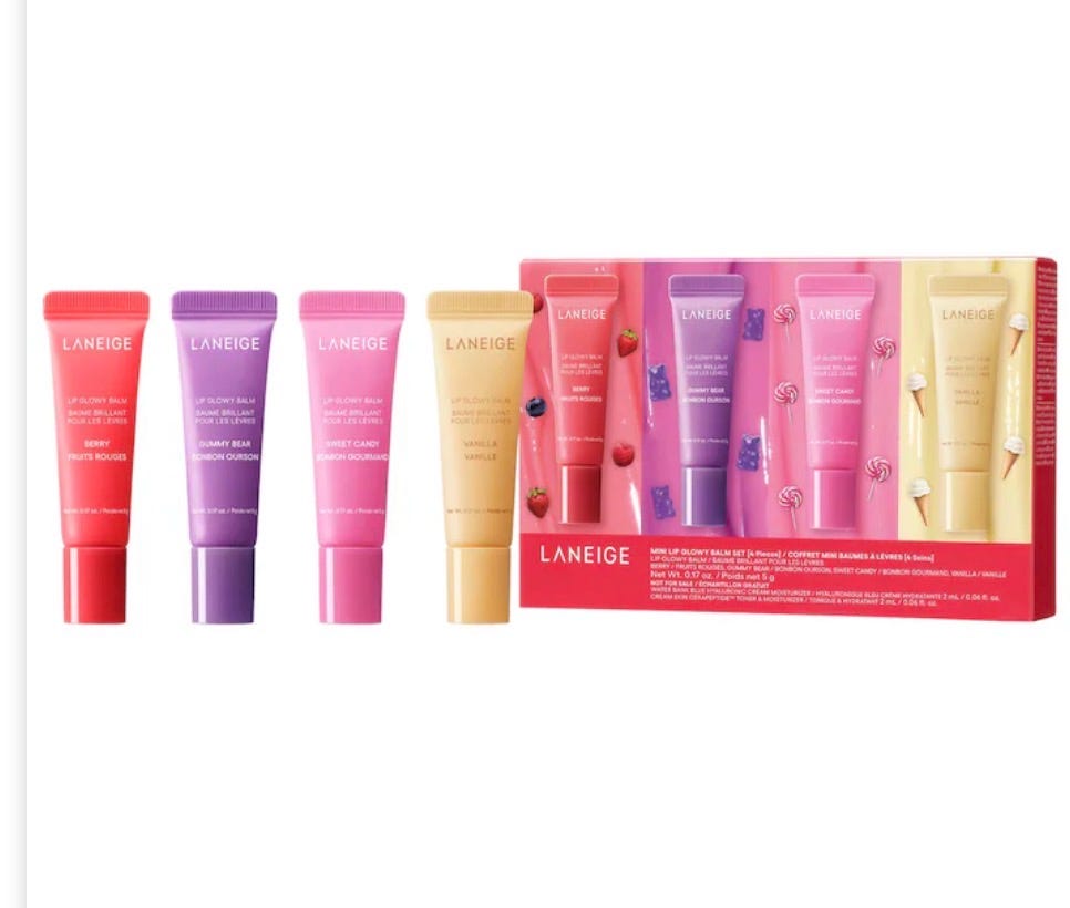 A lotion or a lip balm is also always a good idea to share as a thank you or thinking of you gift. With gift giving about to hit full swing soon, you can find a pack of minis and either separate or give as a single gift. Laniege is always good to have bedside or in your purse.