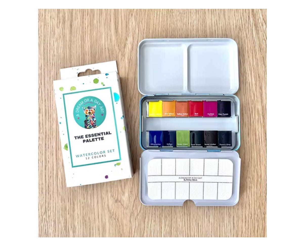 I’m now following a water colorist, Andrea Nelson, who makes the painting look so simple. Maybe I can pick that up — it seems forgiving and I can make postcards or note cards. She sells these sets and puts up reels with step-by-step instructions.